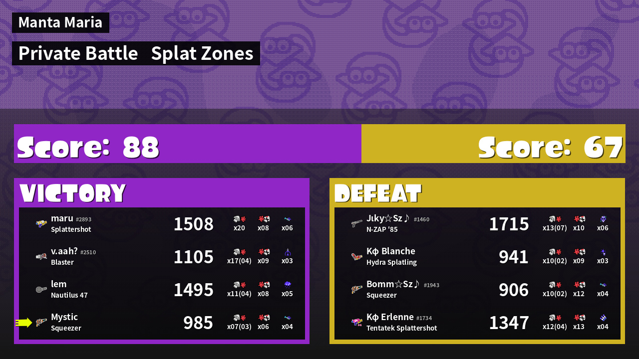 | Medals | #1 Super Jump Spot #1 Splat Zone Hero #2 Splat Zone Inker | ||
