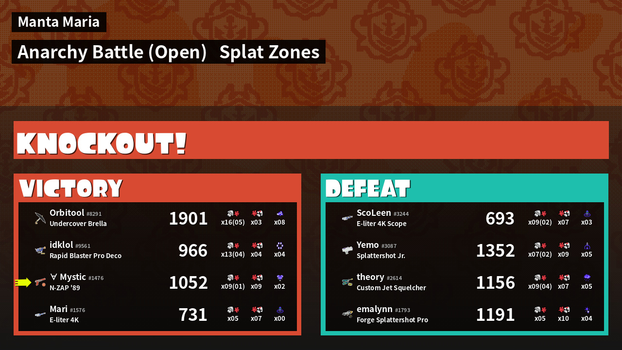 | Mode | Splat Zones - Anarchy Battle (Open) | ||