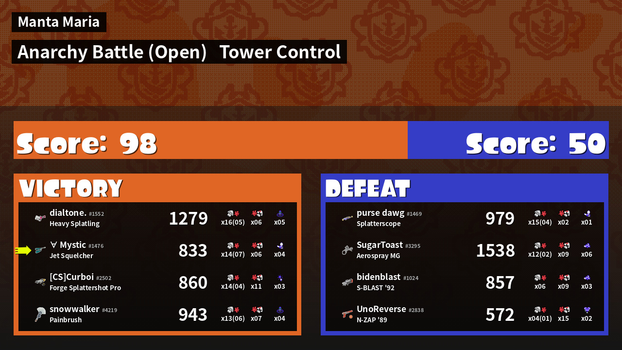| Mode | Tower Control - Anarchy Battle (Open) | ||