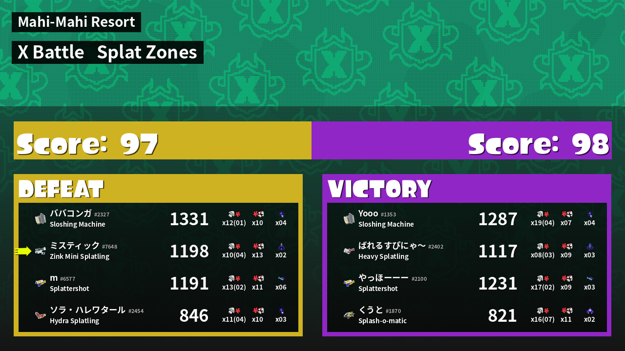 | Mode | Splat Zones - X Battle | ||