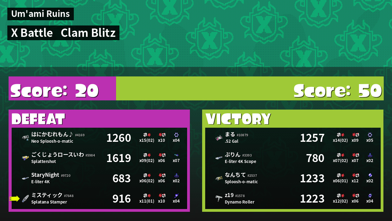 | Mode | Clam Blitz - X Battle | ||