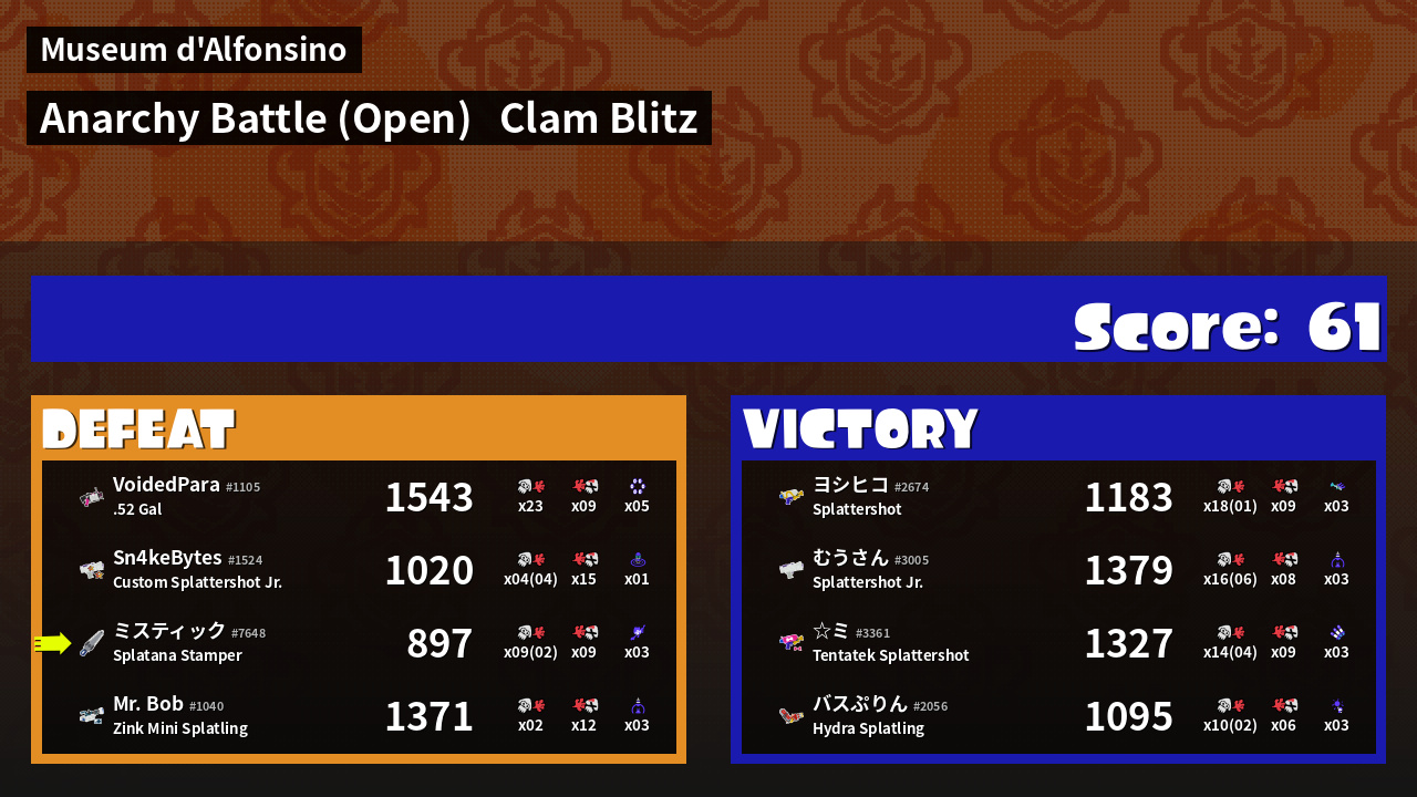 | Mode | Clam Blitz - Anarchy Battle (Open) | ||