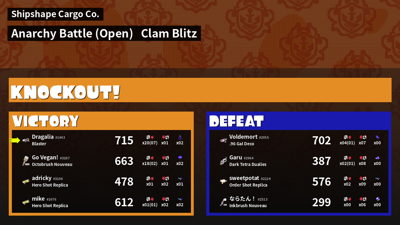 | Mode | Clam Blitz - Anarchy Battle (Open) | ||