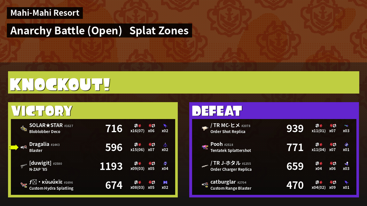 | Mode | Splat Zones - Anarchy Battle (Open) | ||