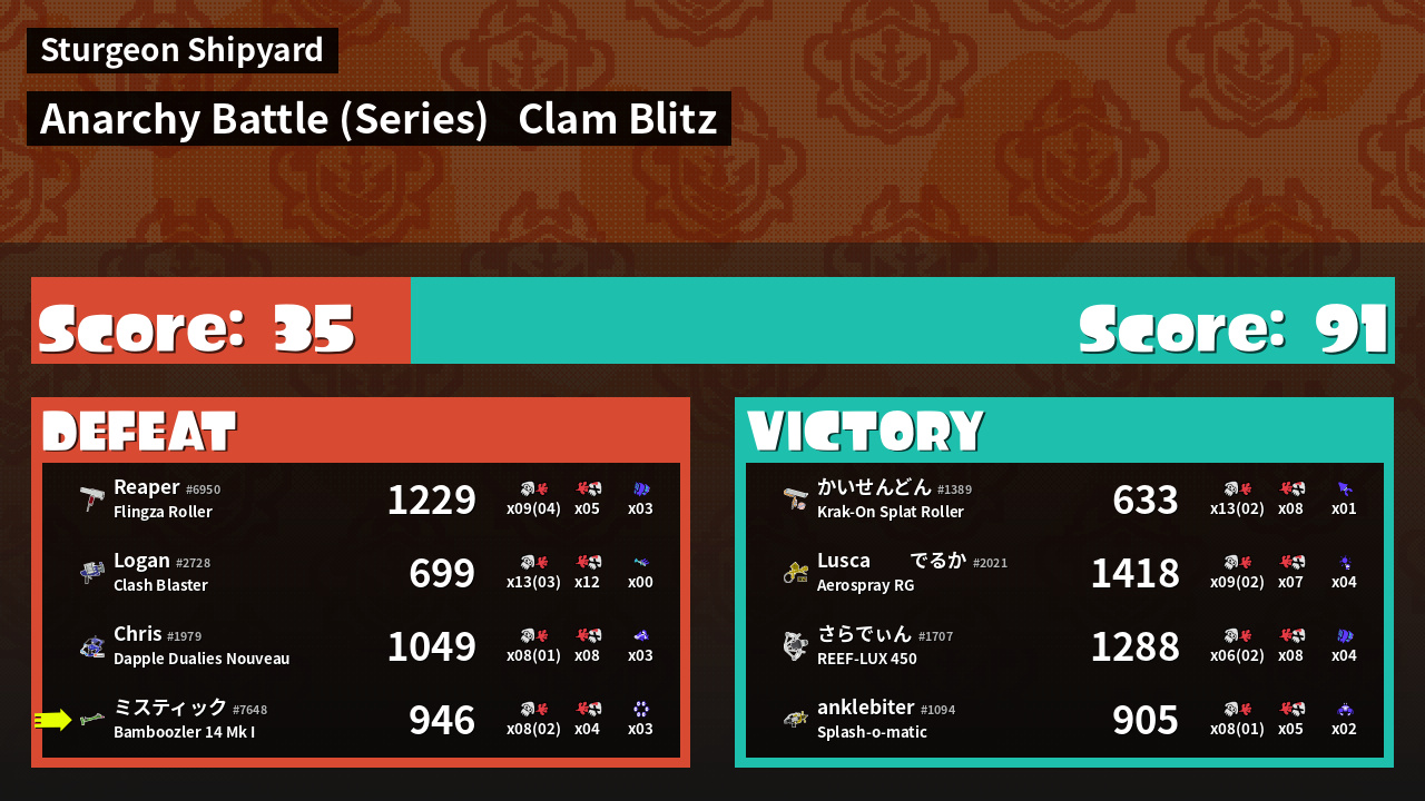 | Mode | Clam Blitz - Anarchy Battle (Series) | ||