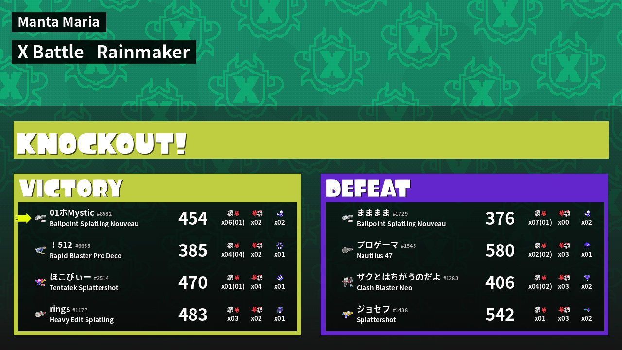 | Mode | Rainmaker - X Battle | ||