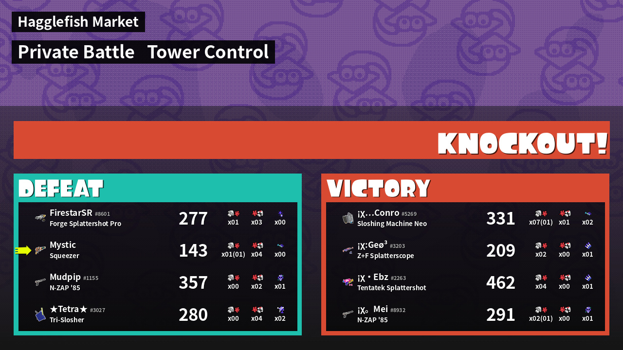| Medals | #1 Overall Splatter #1 Splat Assister #2 Popular Target | ||