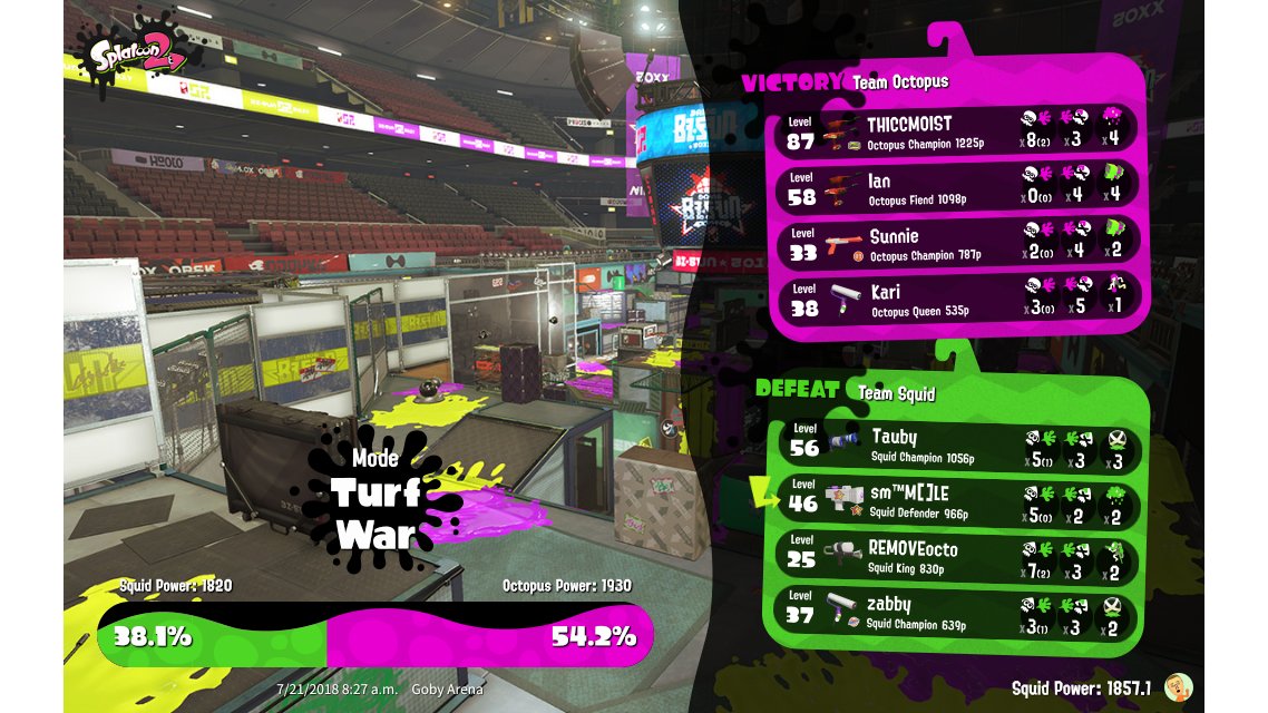 | Splatfest Power | 1,857.1 | ||||||||||||||||||||||||||||||||||