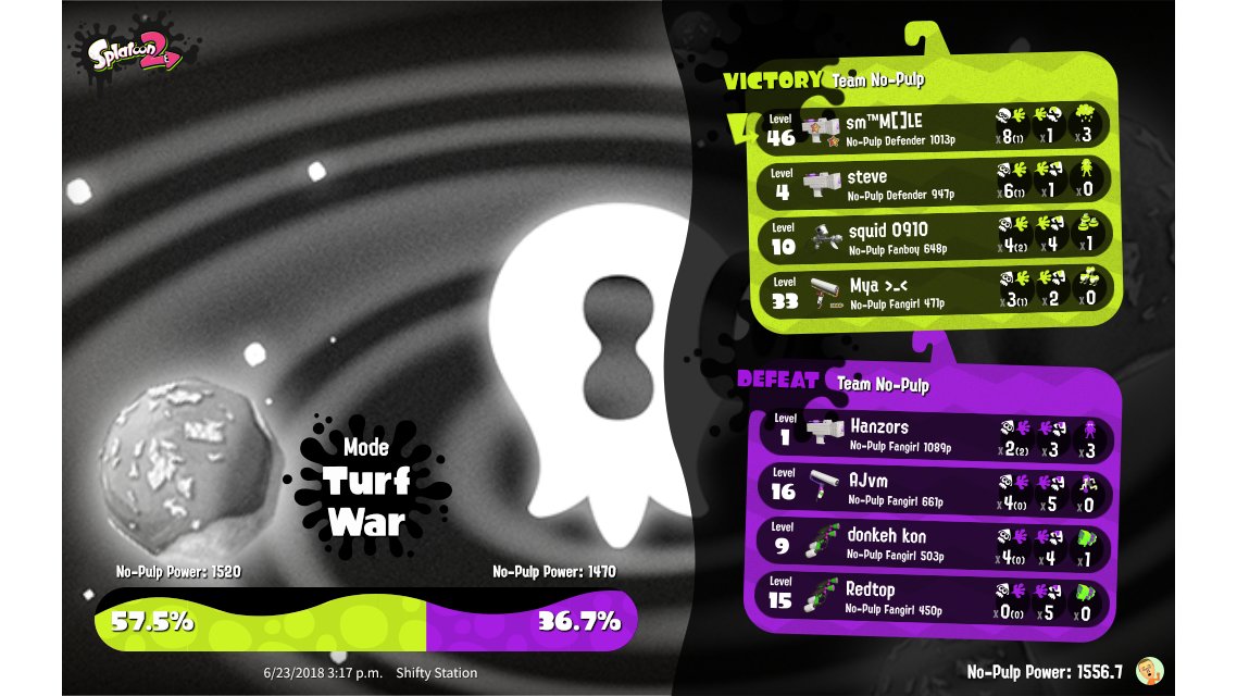 | Splatfest Power | 1,556.7 | ||||||||||||||||||||||||||||||||||