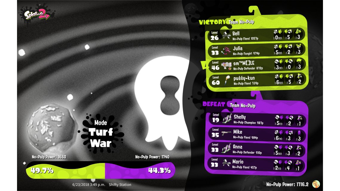 | Splatfest Power | 1,716.2 | |||||||||||||||||||||||||||||||||||||