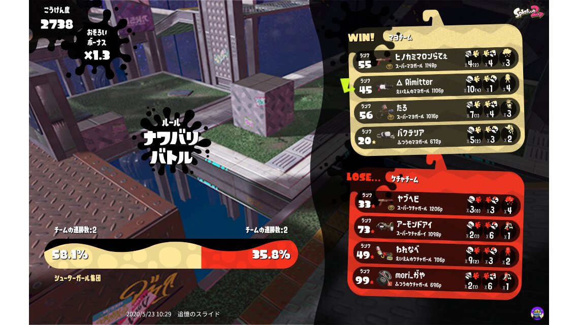 | Team マヨ シューターガール集団 Win Streak: 2 | 3,942 | 17 / 12 | 1.42 58.62% | ||||