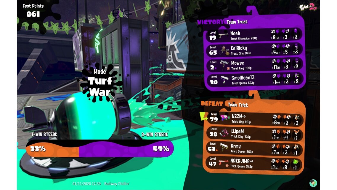 | Mode | Turf War - Splatfest (Normal) | |||||||||||||||||||||||||||||||
