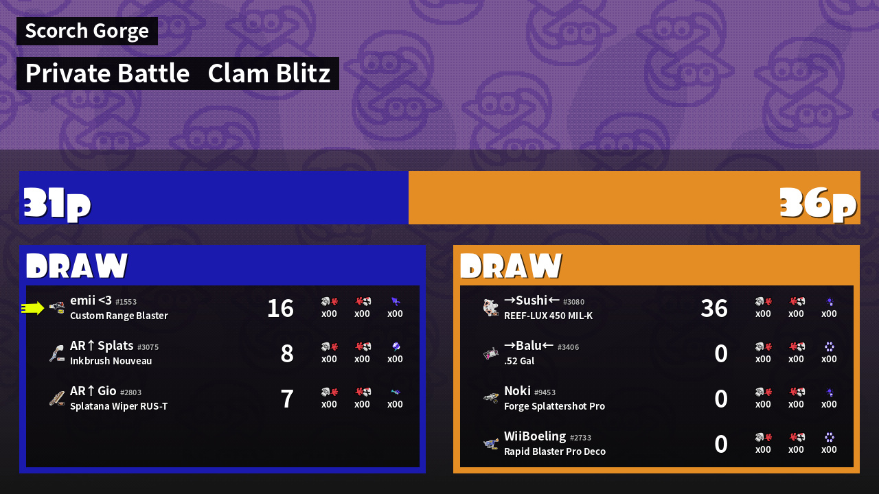 | Weapon | Custom Range Blaster ( Splat Bomb / Kraken Royale) | ||