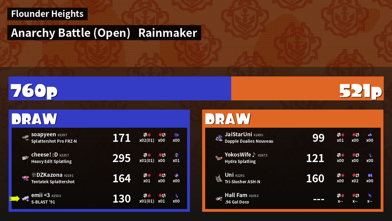 | Mode | Rainmaker - Anarchy Battle (Open) | ||