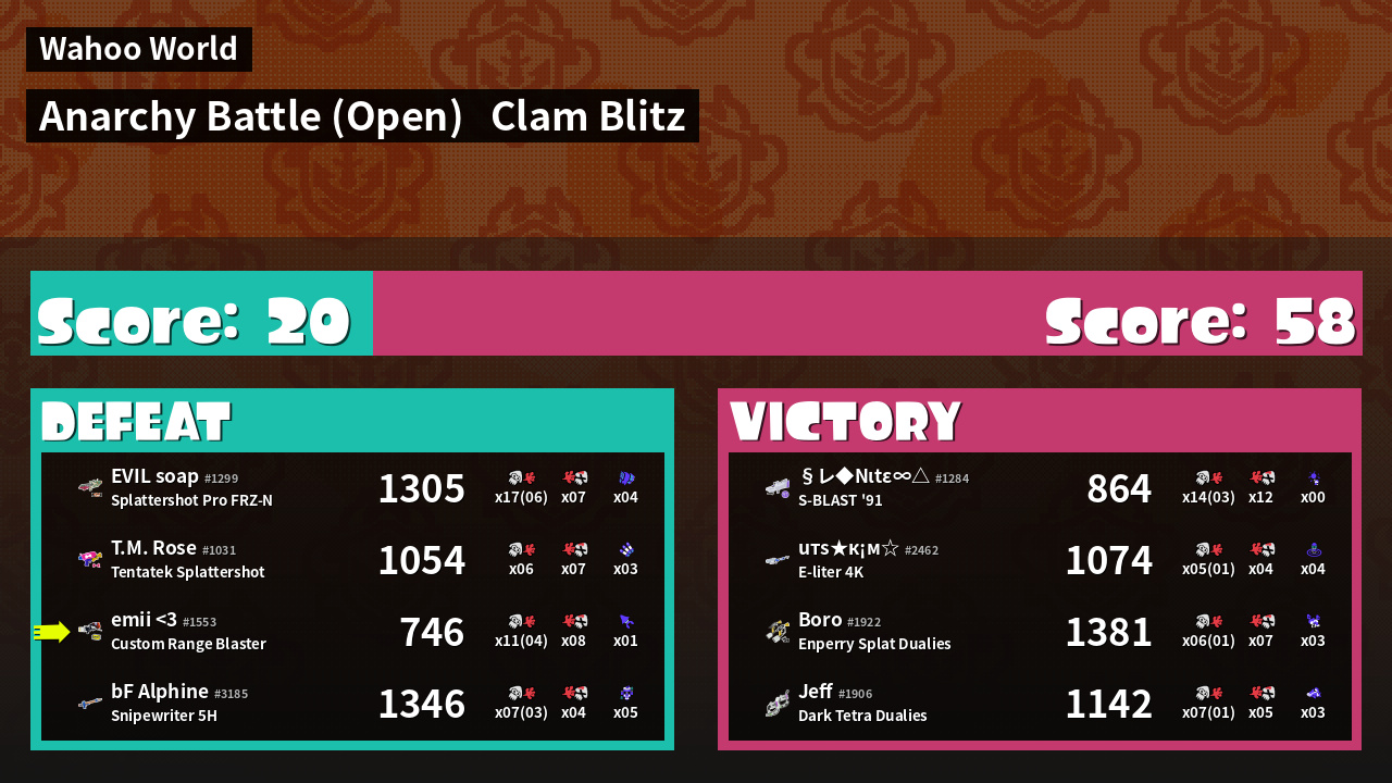| Mode | Clam Blitz - Anarchy Battle (Open) | ||