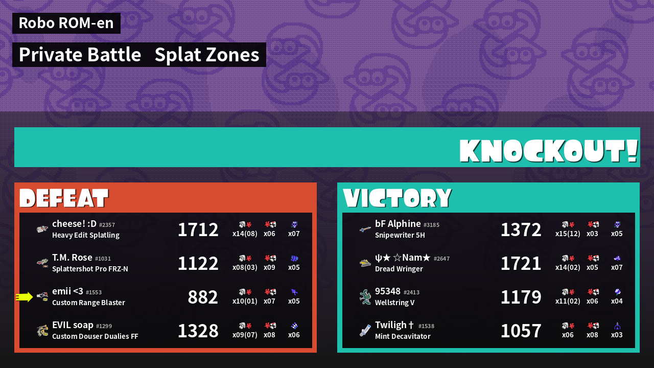 | Mode | Splat Zones - Private Battle | ||