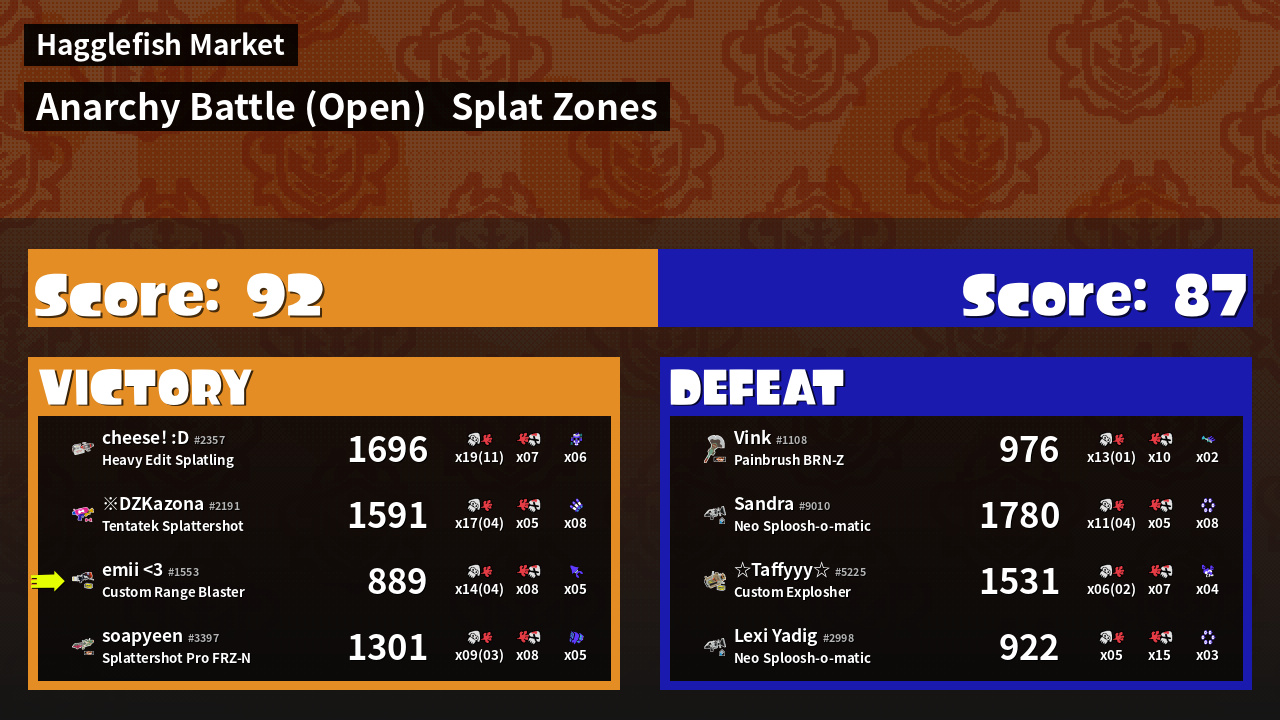 | Mode | Splat Zones - Anarchy Battle (Open) | ||