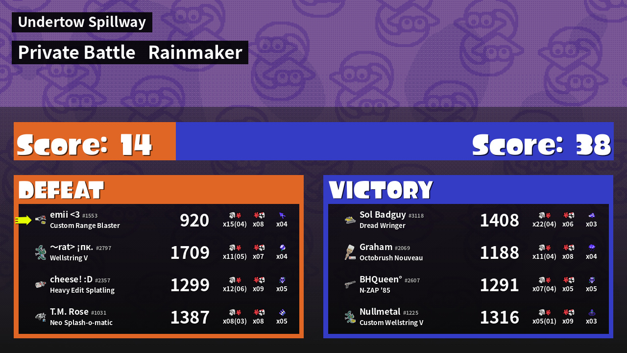 Kills / Deaths | 11 + 4 / 8 > Kill Ratio: 1.38 | ||