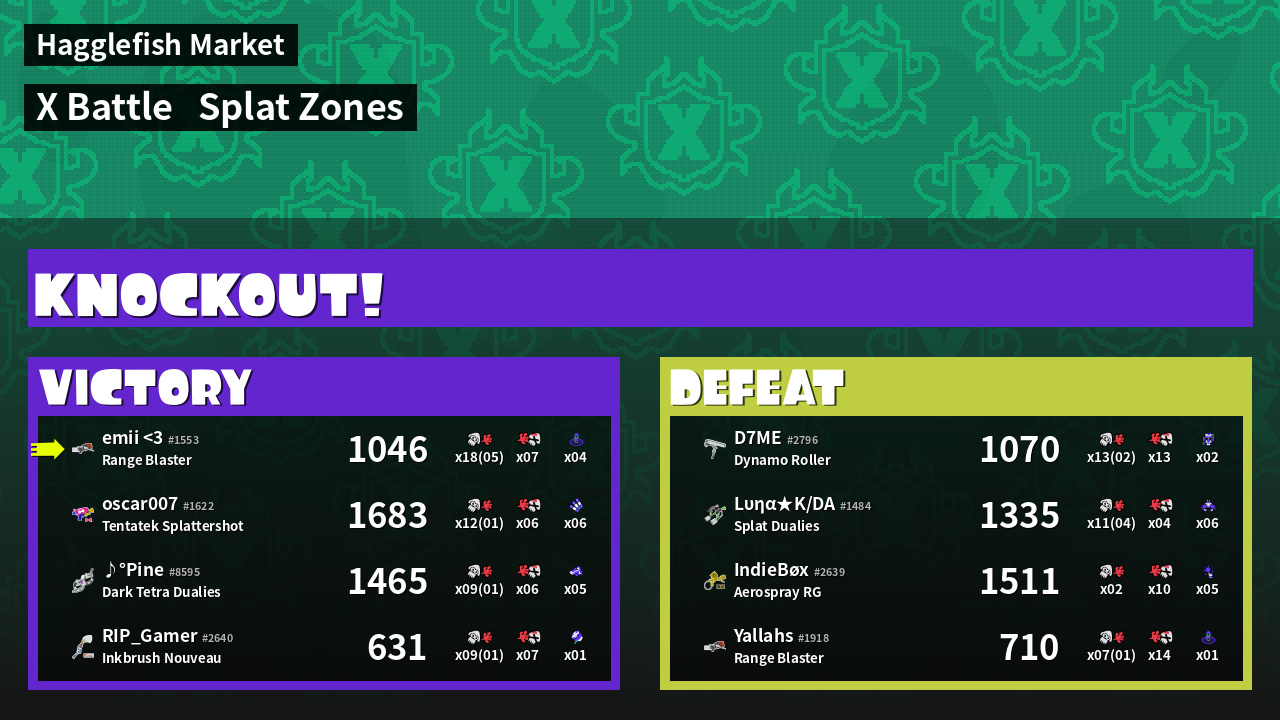 | Mode | Splat Zones - X Battle | ||