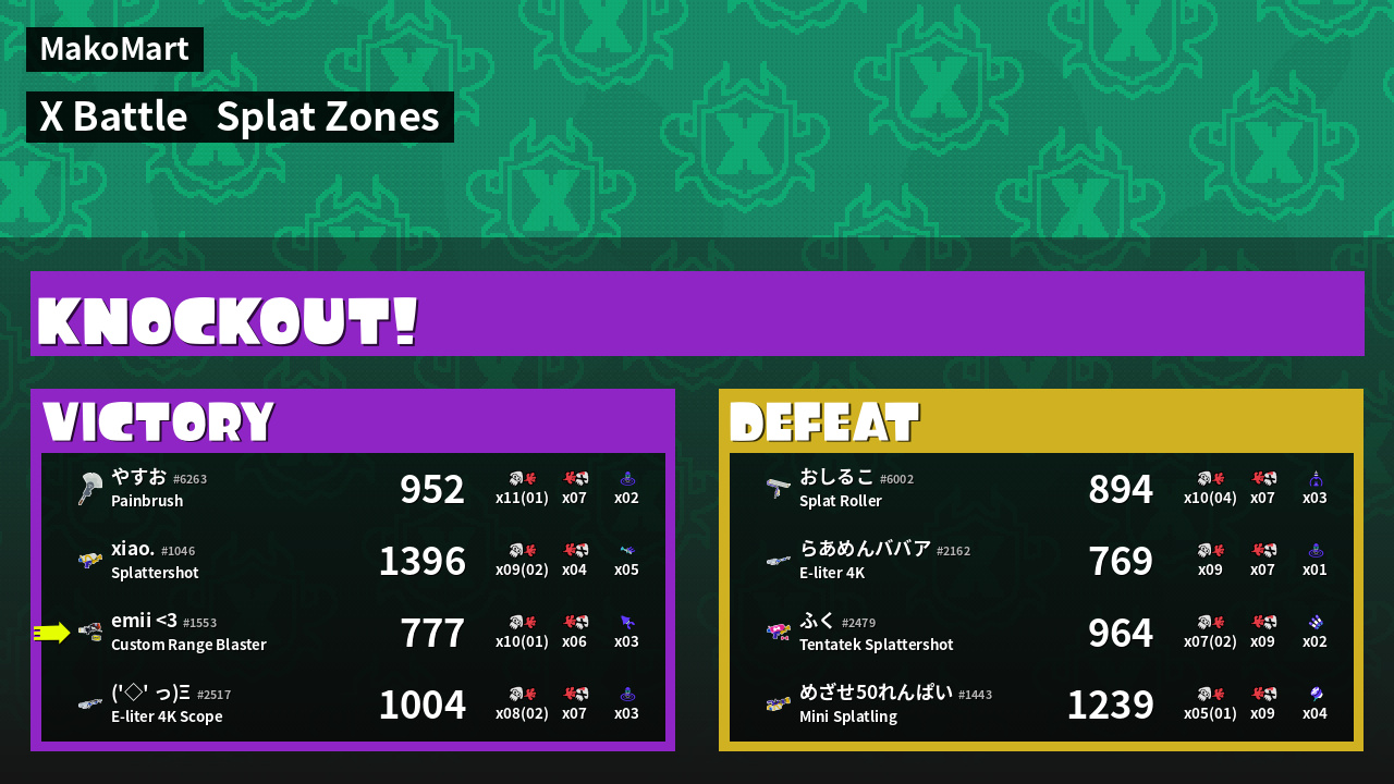 | Medals | #1 Splat Zone Guard #1 Popular Target #1 Ground Traveler | ||