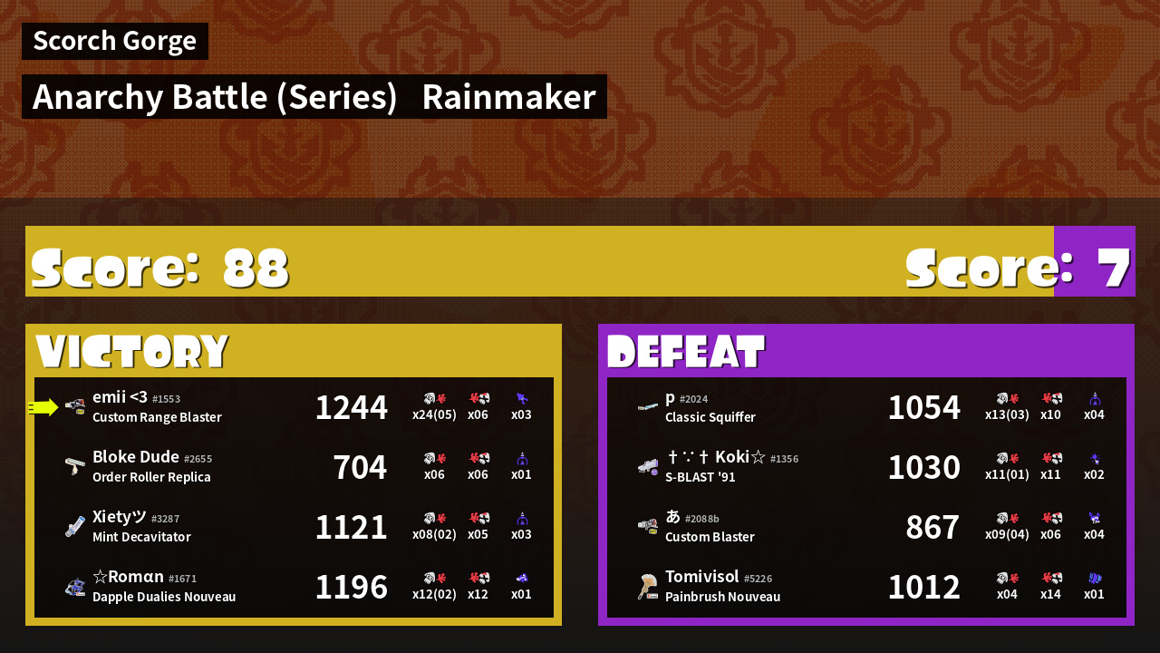 | Medals | #1 Overall Splatter #1 Turf Inker #1 Popular Target | ||