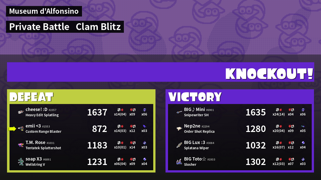 | Mode | Clam Blitz - Private Battle | ||