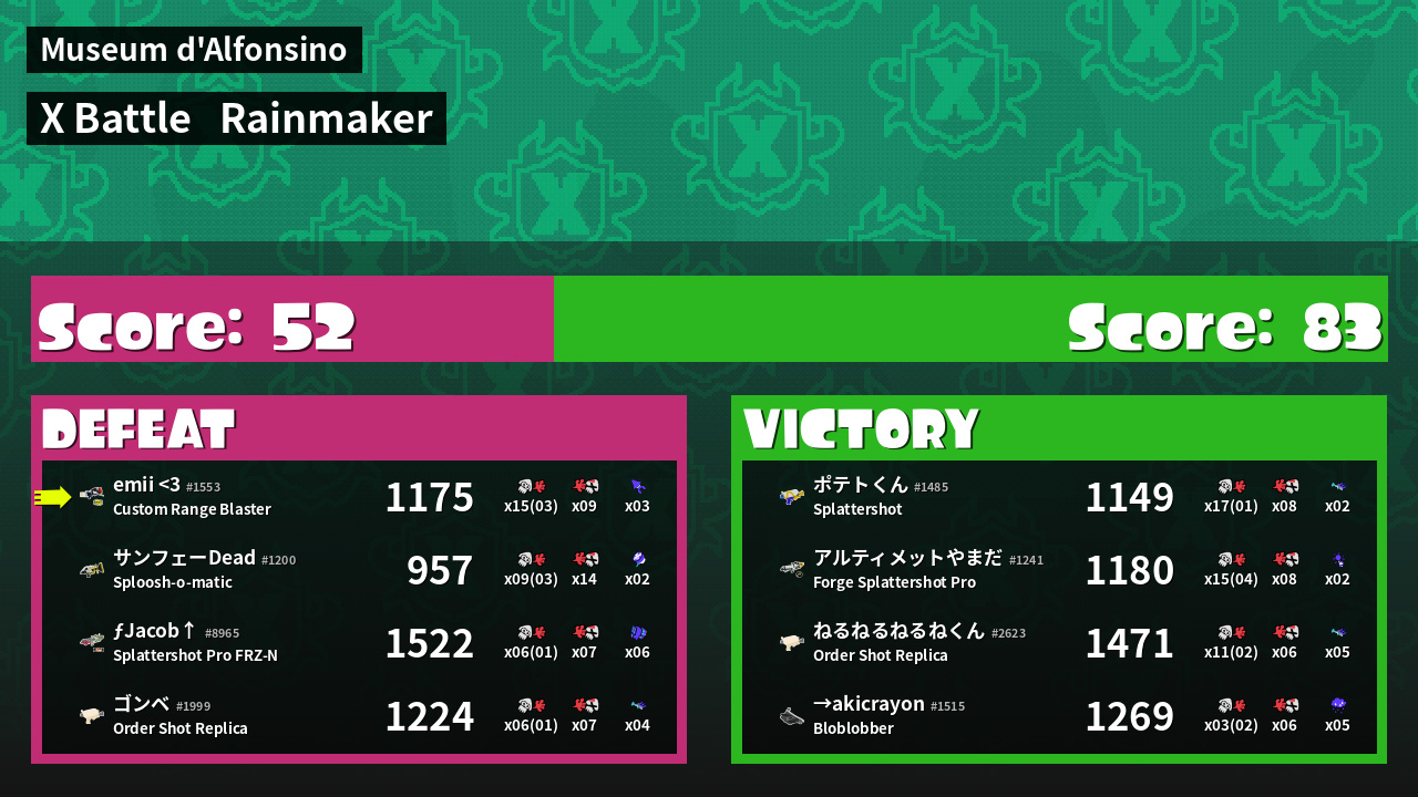 | Medals | #1 Overall Splatter #1 Score Booster #1 Enemy Splatter | ||
