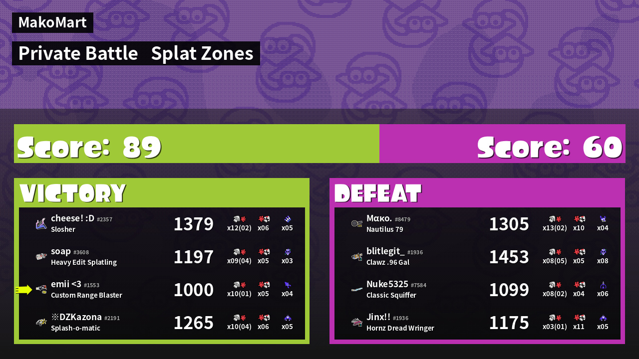 Kills / Deaths | 9 + 1 / 5 > Kill Ratio: 1.80 | ||