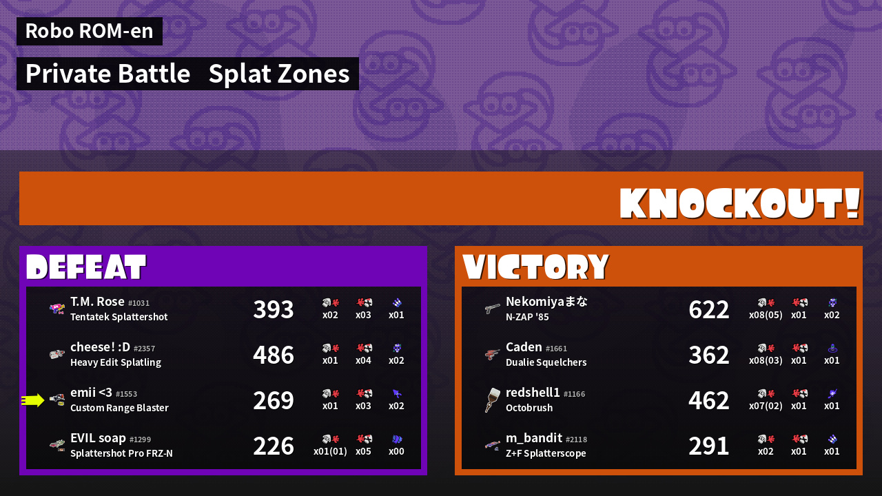 | Mode | Splat Zones - Private Battle | ||