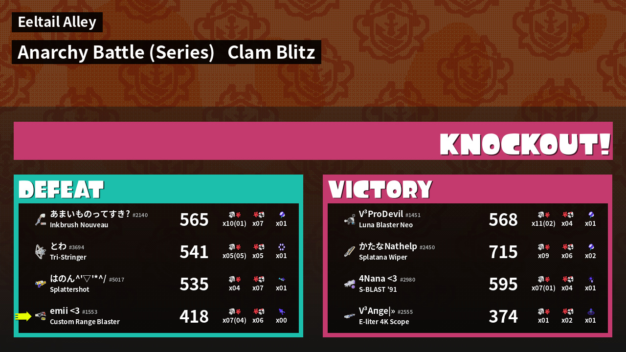 | Mode | Clam Blitz - Anarchy Battle (Series) | ||