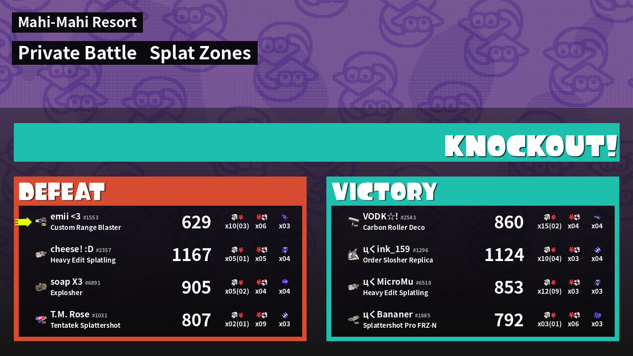 Kills / Deaths | 7 + 3 / 6 > Kill Ratio: 1.17 | ||