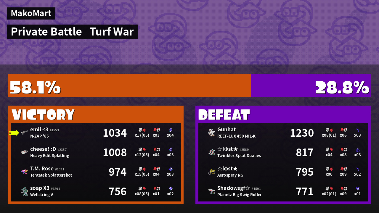| Medals | #1 Overall Splatter #1 Turf Inker #1 Popular Target | ||
