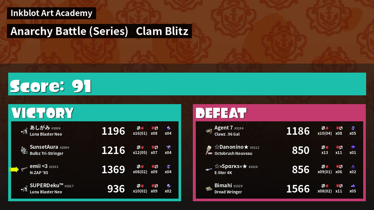 | Mode | Clam Blitz - Anarchy Battle (Series) | ||