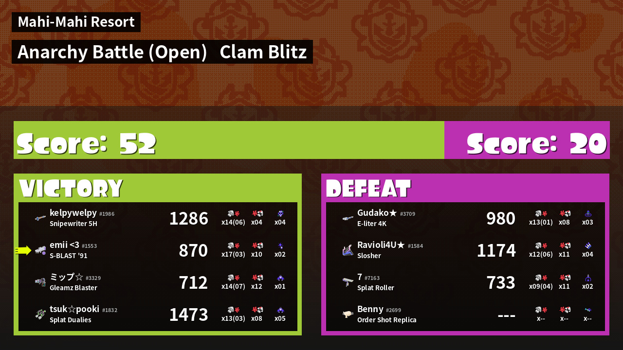 | Mode | Clam Blitz - Anarchy Battle (Open) | ||