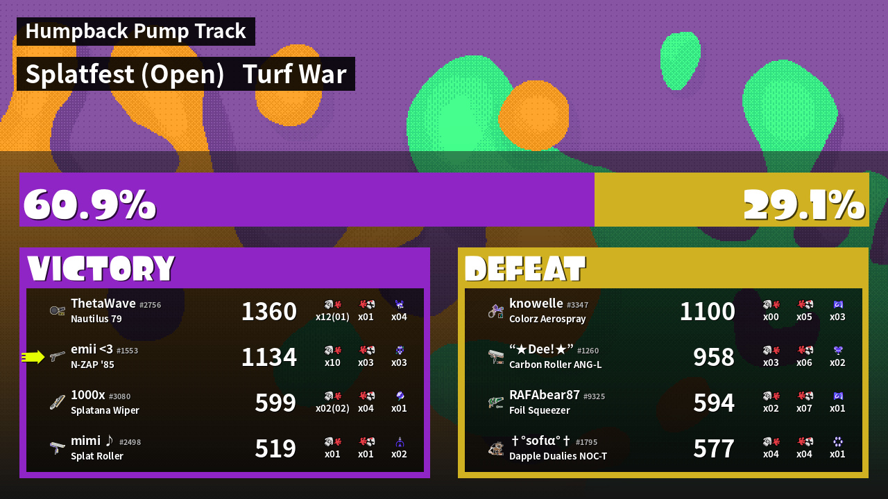 | Memversal Youth  mimi ♪ #2498 |  Splat Roller                    | 519 | 1 + 0 | 1 | 1.00 |  2 | |