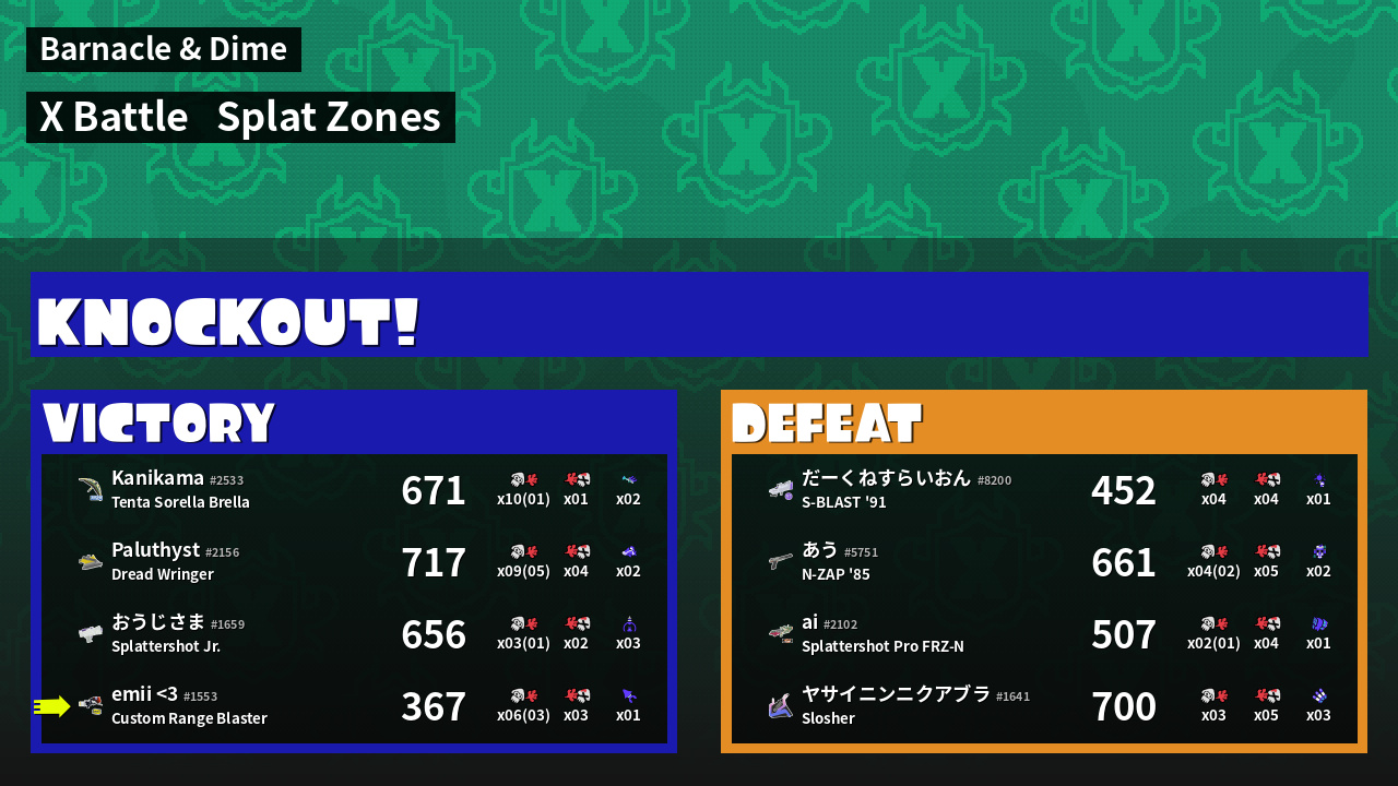 | Medals | #1 Ground Traveler #1 Damage Taker #2 Splat Zone Guard | ||