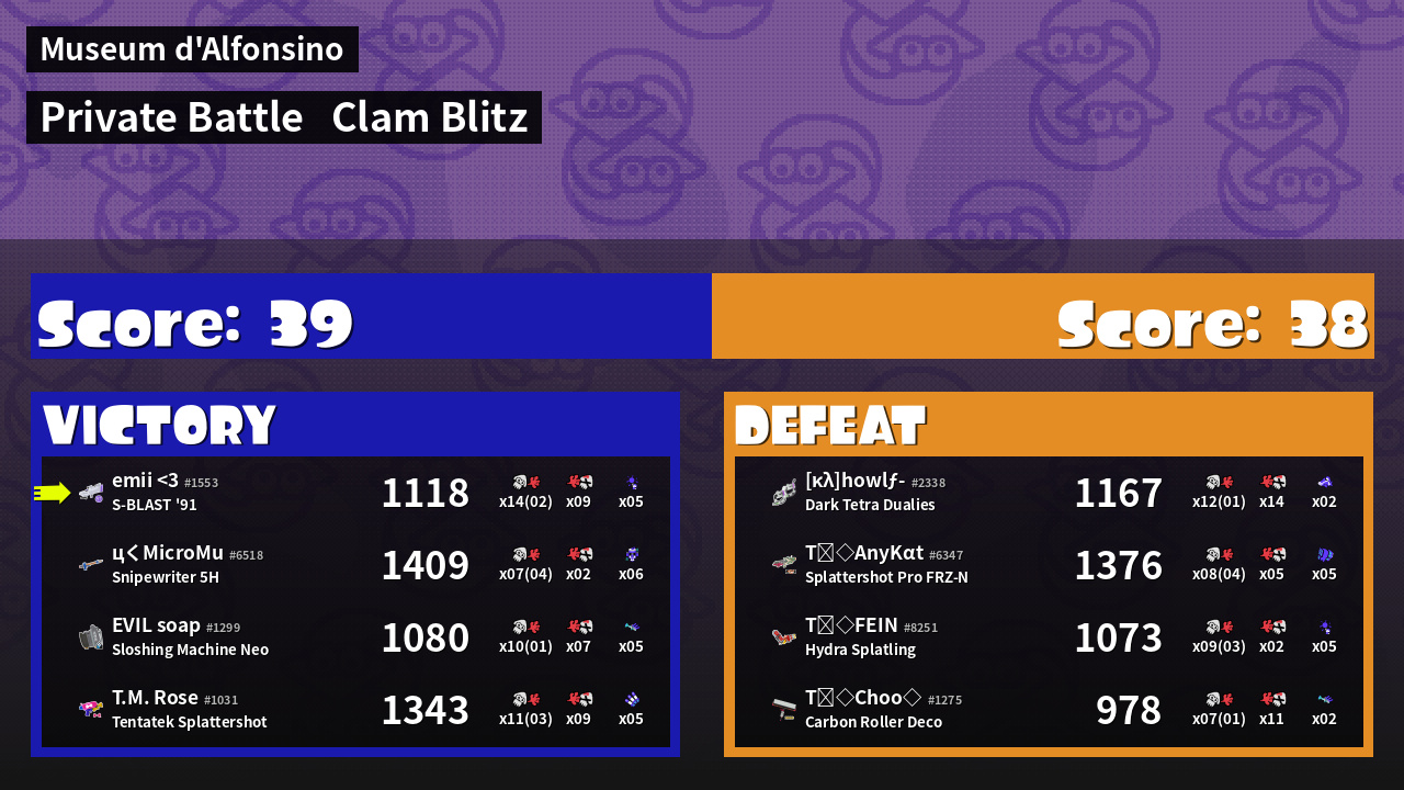 | Medals | #1 Overall Splatter #1 Popular Target #1 Enemy Splatter | ||