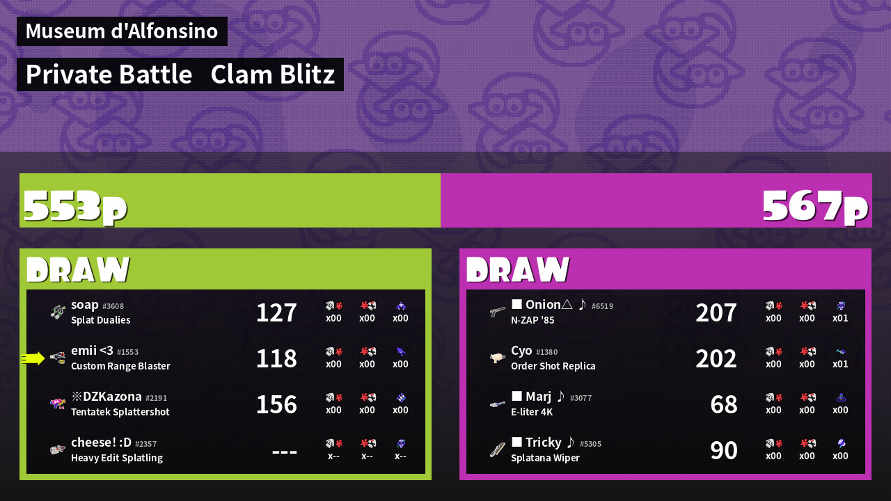 | Weapon | Custom Range Blaster ( Splat Bomb / Kraken Royale) | ||