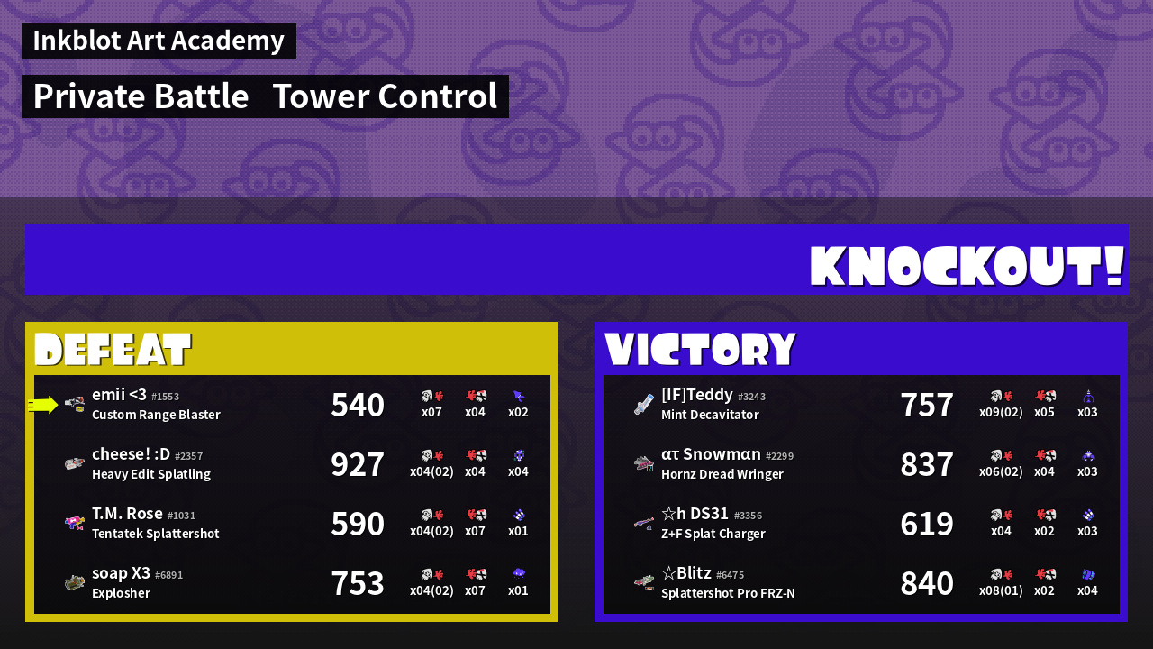 | Medals | #1 Overall Splatter #1 Popular Target #1 Enemy Splatter | ||