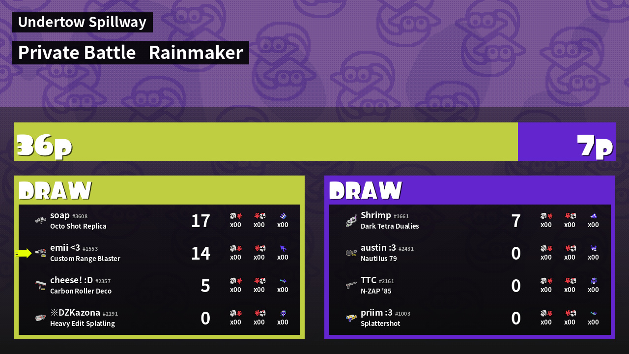 Kills / Deaths | 0 + 0 / 0 = Kill Ratio: 1.00 | ||