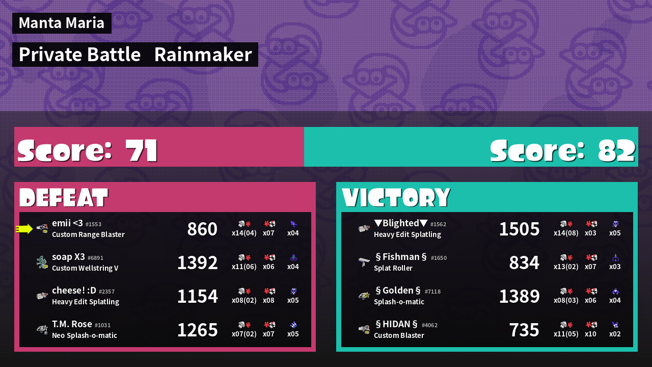 Kills / Deaths | 10 + 4 / 7 > Kill Ratio: 1.43 | ||