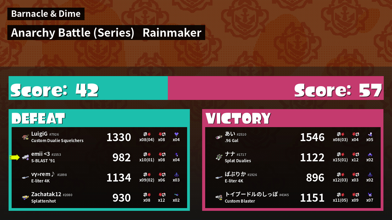 | Mode | Rainmaker - Anarchy Battle (Series) | ||