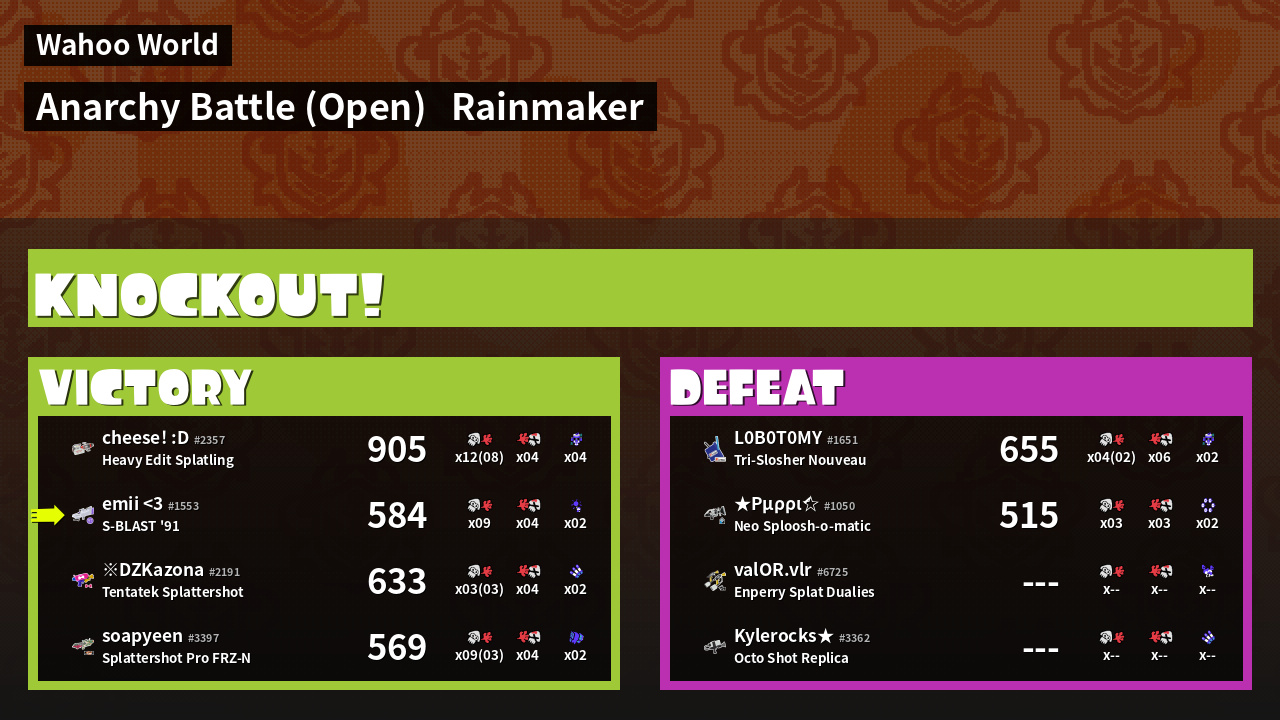 | Mode | Rainmaker - Anarchy Battle (Open) | ||