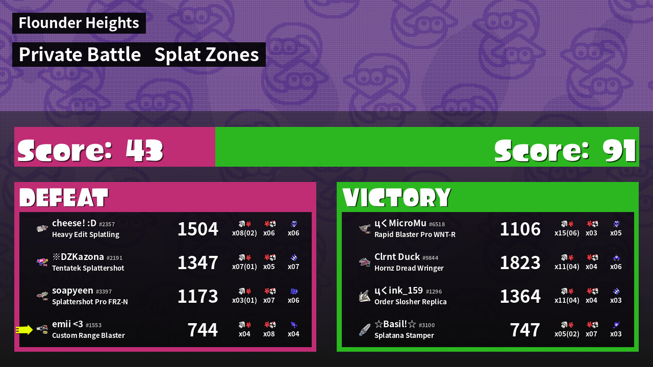 | Thank You for Splat Zones Enthusiast  ☆Basil!☆ #3100 |  Splatana Stamper                    | 747 | 3 + 2 | 7 | 0.43 |  3 | |