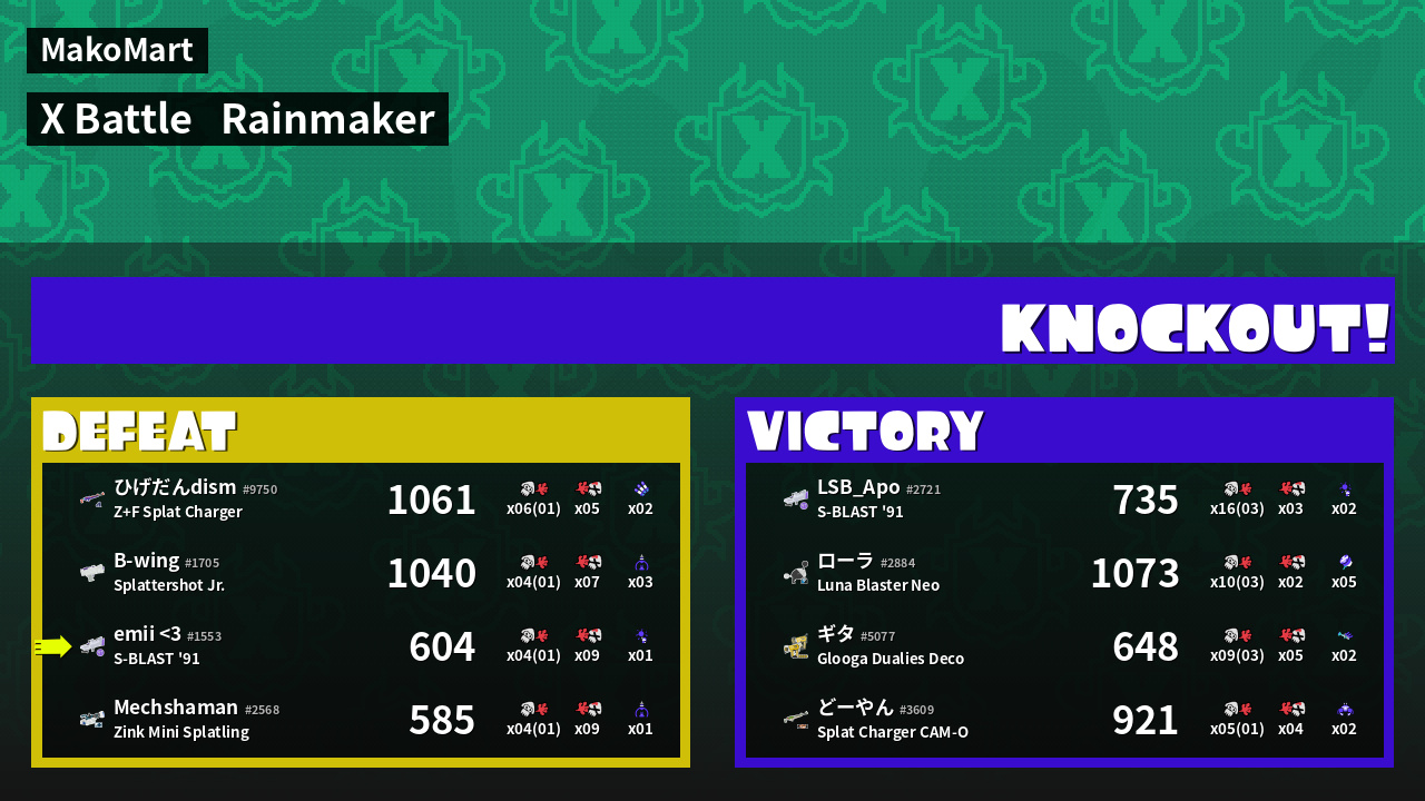 | Medals | #1 Splat Assister #1 Ground Traveler First Splat! | ||