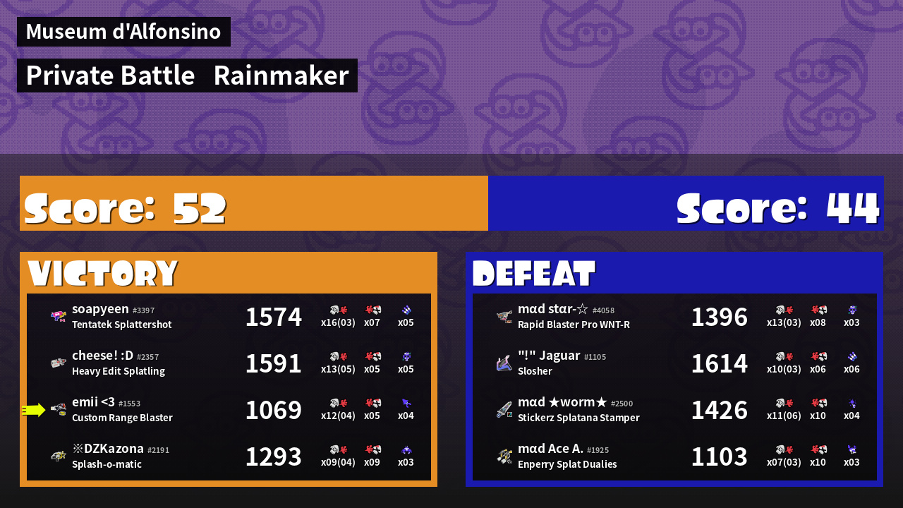 | Weapon | Custom Range Blaster ( Splat Bomb / Kraken Royale) | ||