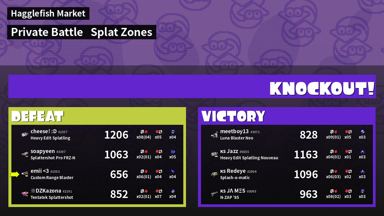 | Mode | Splat Zones - Private Battle | ||