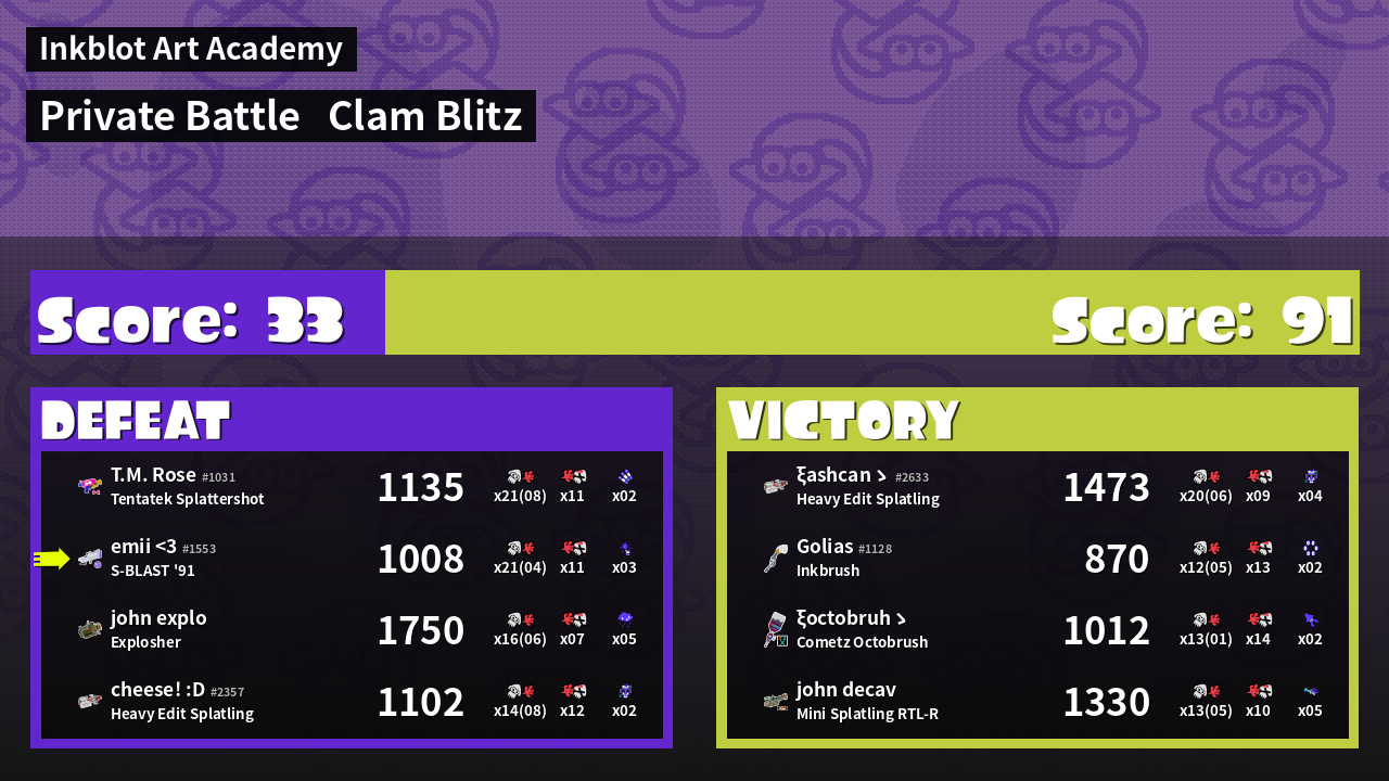 Kills / Deaths | 17 + 4 / 11 > Kill Ratio: 1.55 | ||
