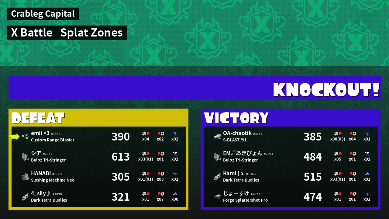 | Mode | Splat Zones - X Battle | ||