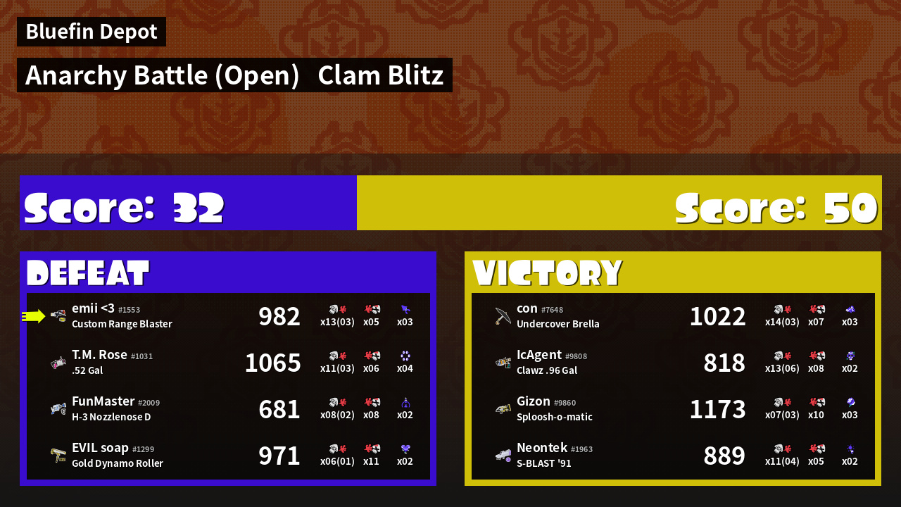 | Mode | Clam Blitz - Anarchy Battle (Open) | ||